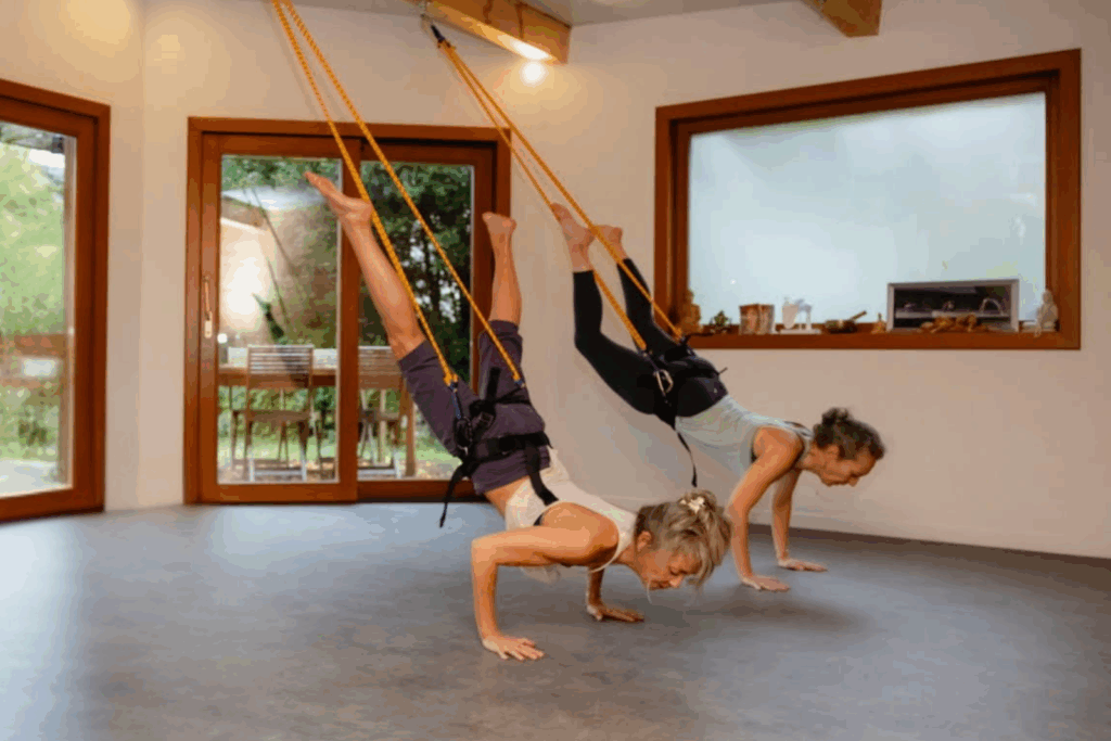 Venez découvrir le Bungee Dance : une expérience unique qui vous fait voler, glisser, tourner et danser en apesanteur grâce à un harnais et des élastiques suspendus au plafond.