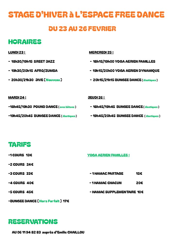Différents styles de danse sont venus s’ajouter au fur et à mesure des années, puis le Yoga Aérien et enfin la Danse Thérapie.